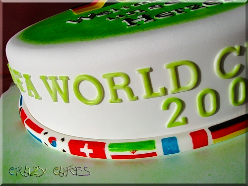 Unten auf dem Rand sind alle 32 WM-Teilnehmer-Fahnen abgebildet:
